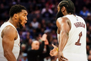 [流言板]梅尔顿垃圾时间出手三分并投进,随后东契奇比出倒赞手势